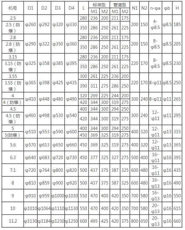 三、CDZ型低噪聲軸流風機外形及安裝尺寸